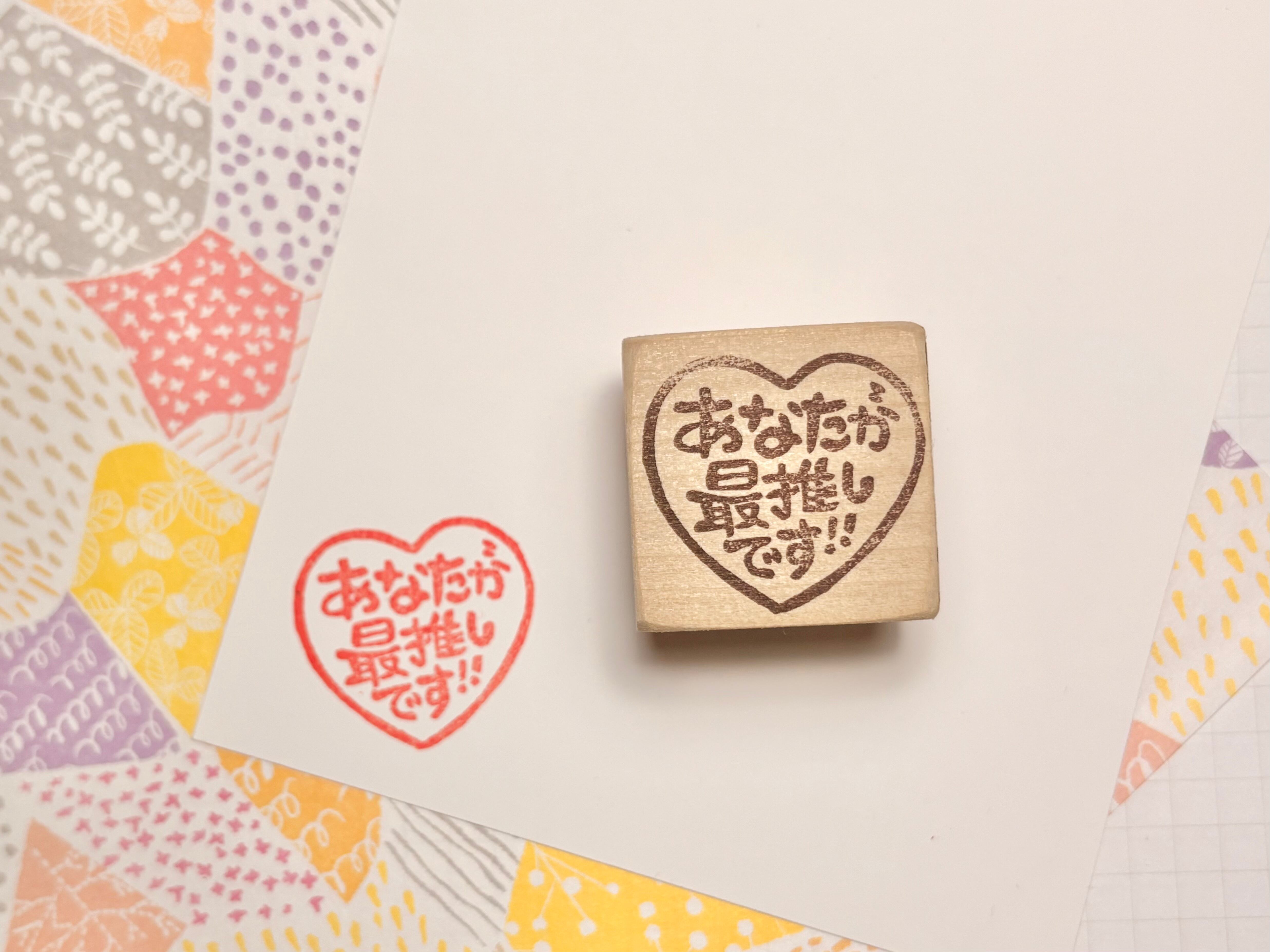 このはんこは、ファンレターやメッセージカードにぴったり。自分の推しへの愛情をしっかりと伝えるワンポイントとして活躍します。コンパクトなサイズなので、気軽に持ち運べて、いつでもどこでも思いを込めたメッセージが書けます!